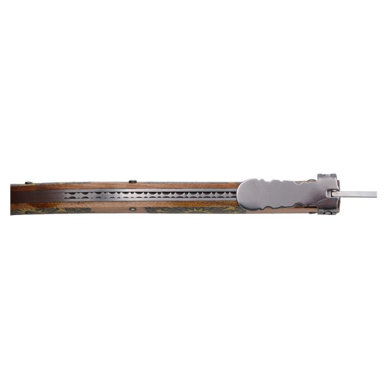 Couteau à cliquet Third série N55Q en bois d’érable, fabriqué avec la technologie CNC, manche en bois d’érable avec apprêt imitation damasquinage, lame en acier 440 finition en 15 cm brillant miroir, avec ressort et billette décorés.