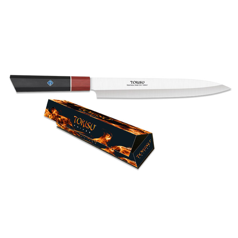 <p>Lame du couteau YANAGIBA TOKISU : 23 cm</p> <p></p> <p>Produit : Couteau de cuisine</p> <p>Nom : YANAGIBA</p> <p>Marque : TOKISU</p> <p>Taille de la lame : 22,70 cm</p> <p>Taille de la poignée : 13.00 cm</p> <p>Taille totale : 35.70 cm</p> <p>Type d’acier : 5CR15MOV</p> <p>Type de lame : Normale</p> <p>Finition : Satiné</p> <p>Épaisseur de la lame : 4,80 mm</p> <p>Bord : Simple</p> <p>Type de poignée : G10</p> <p>Type de couverture : </p> <p>Avec Virola</p> <p>Poids : 328,00 g</p> <p>Présentation : Boîte Mantada</p> <p>Autres : Fonte unilatérale</p> <p>Il est utilisé pour préparer des sashimis, des poissons et des fruits de mer</p>