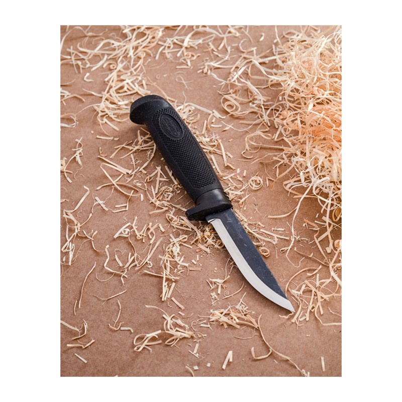 La lame du Timberjack est en acier au carbone, idéale pour la sculpture et facile à affûter en cas de besoin. N’oubliez pas de prendre soin de votre couteau en acier au carbone. Séchez-le soigneusement après chaque utilisation et brossez-le régulièrement avec de l’huile non salée. De cette façon, votre couteau vous durera de nombreuses années.