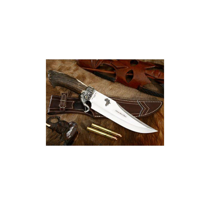 Cette édition limitée et numérotée se compose de seulement 150 unités, ce qui en fait une pièce exclusive et unique en son genre. Le manche est soigneusement fabriqué à partir de bois de cerf, orné d’une rosace décorative en argent sterling. La lame, d’environ 25 cm, est fabriquée en acier allié au chrome-vanadium, ce qui garantit sa durabilité et sa résistance.