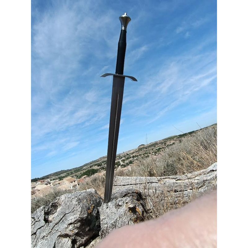 <p>- Armement de l’épée historique.<br />- Longueur totale : 100 cms.<br />- Lame en acier au carbone.<br />- Manche en acier inoxydable et bois.<br />- Pleine soie.<br />- L’épée ne convient pas à la reconstitution historique.<br />- Épée de combat non réelle.<br />- Fabriqué à Tolède.<br />- Fourreau en cuir inclus.</p>
