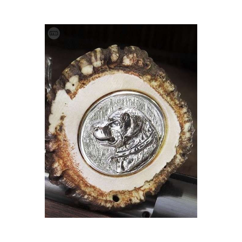 <li>Manche : Bois de cerf, garde et pièce de monnaie en argent sterling, incrustés à l’extrémité du manche</li>