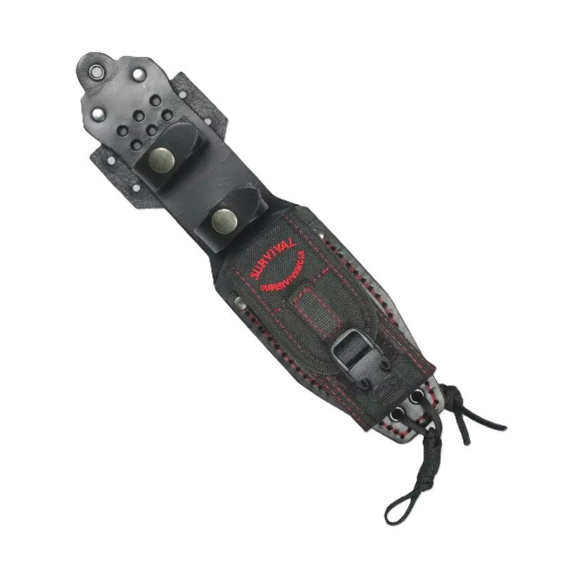 Il coltello ha un'area progettata per fare uso di selce, foro iniziatore per fare fuoco a frizione con arco, foro per corda, rompivetro (merlato), dorso arrotondato per colpire senza danneggiare il bastone e le guancette sono rimovibili (opzione di ricambio).