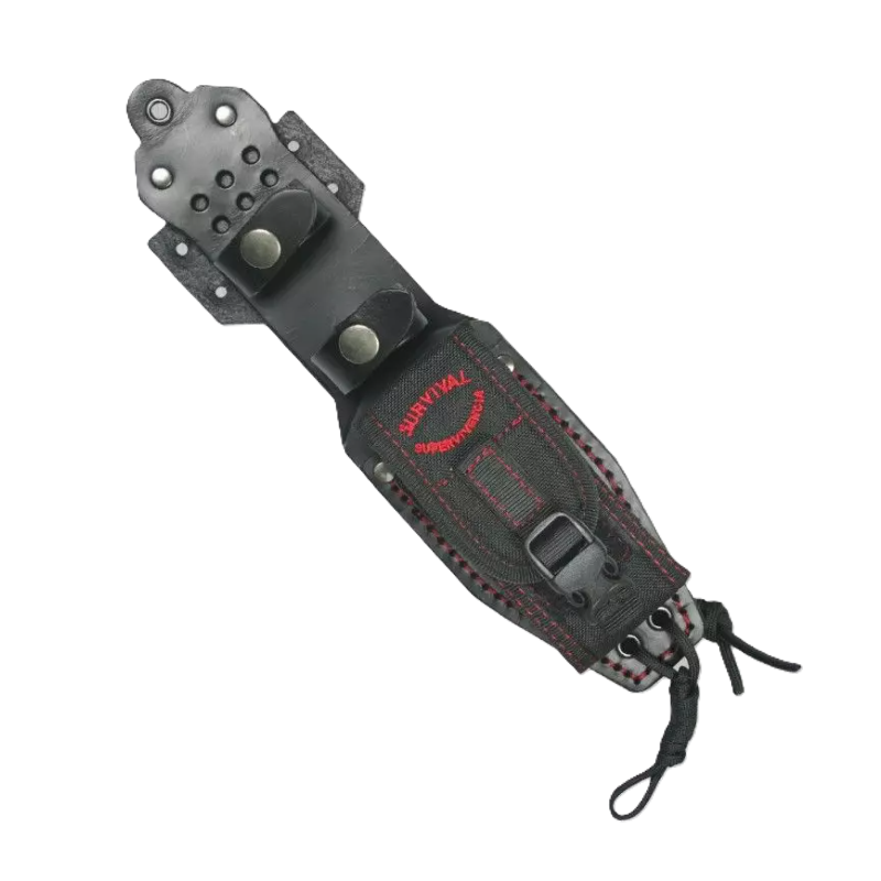 Il coltello ha un'area progettata per fare uso di selce, foro iniziatore per fare fuoco a frizione con arco, foro per corda, rompivetro (merlato), dorso arrotondato per colpire senza danneggiare il bastone e le guancette sono rimovibili (opzione di ricambio).