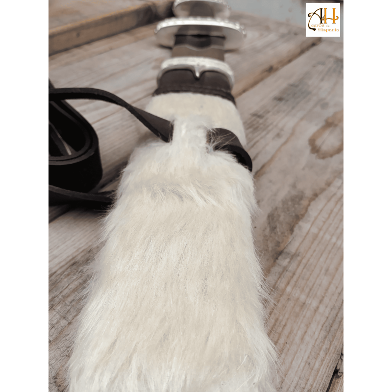 Il fodero è realizzato in legno rivestito con pelle e cuoio di qualità.