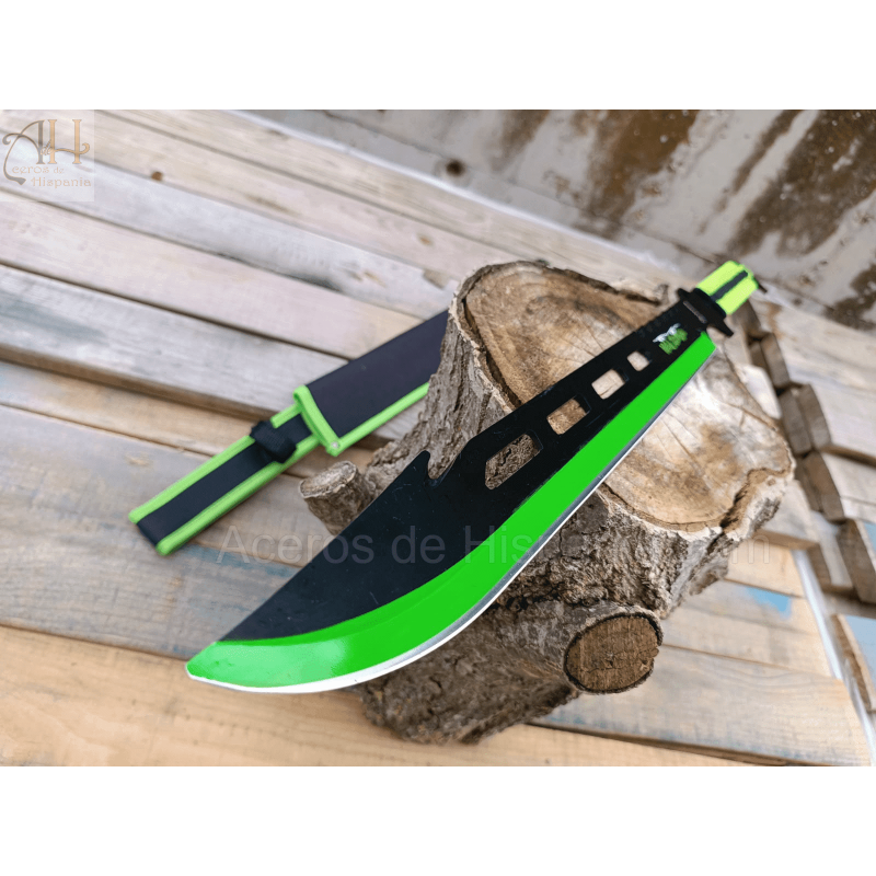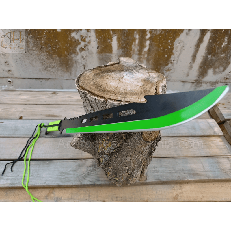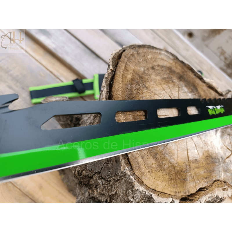 Albainox MAD ZOMBIE tagliacanne machete. Se sei un amante degli strumenti utili e versatili, questo machete tagliacanne è perfetto per te. Con una lama di 46 centimetri di lunghezza, ilmanico con corde nere e verdi, con una lunghezza di 17 centimetri, ti fornirà una presa salda e sicura, anche in condizioni avverse. Inoltre, gli conferisce un tocco estetico unico e accattivante. Il machete tagliacanna Albainox MAD ZOMBIE ha una lunghezza totale di 63 centimetri, il che lo rende uno strumento compatto.