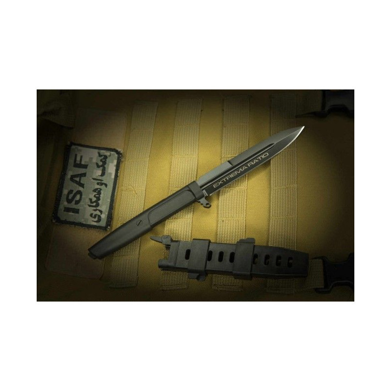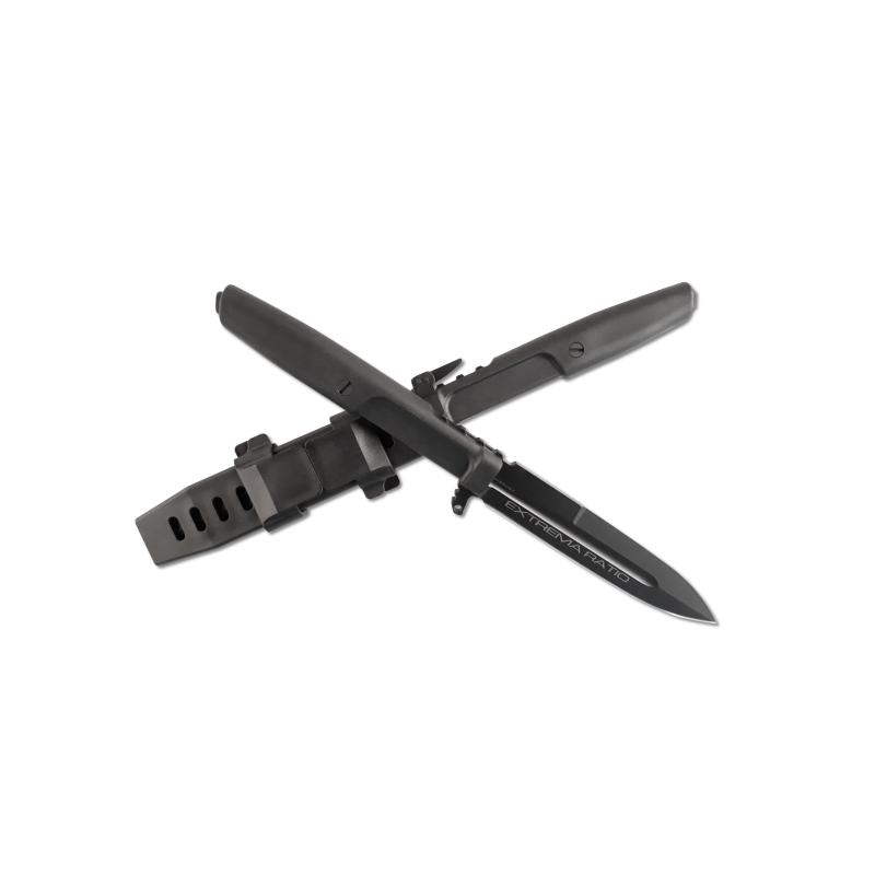 Coltello tattico multiuso molto leggero e maneggevole. Questo stilo a un solo bordo con protezione unica è dotato di uno speciale fodero in nylon Aspis appositamente studiato da Extrema Ratio per consentire un rapido sgancio della lama e il suo attacco all'interno del sistema M.O.L.L.E., grazie a due clip multiposizione.
