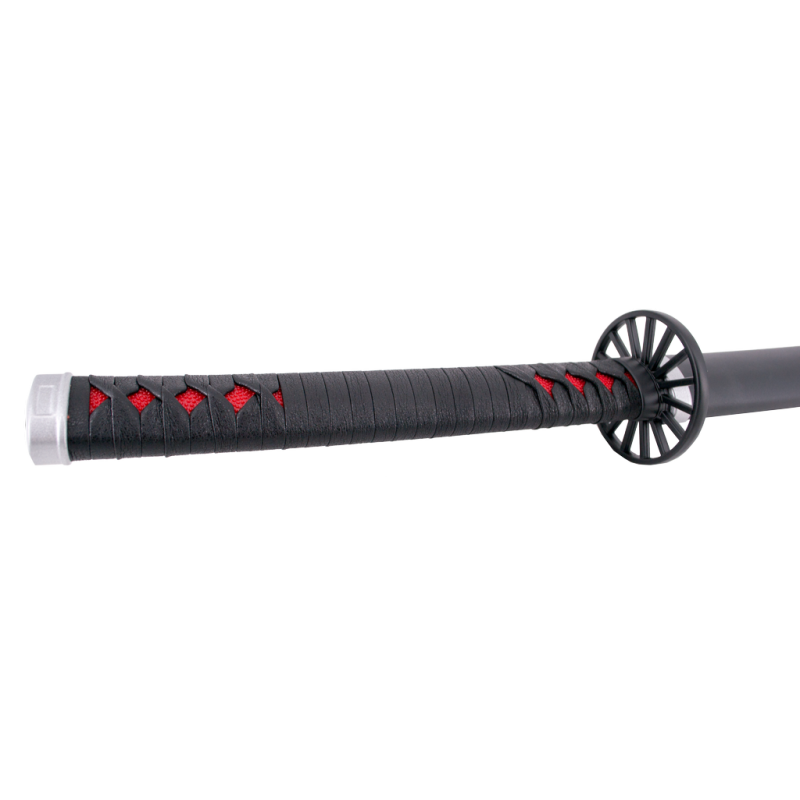 Demon Slayer Katana S0243 brandita da Kamado Tanjirou, replica non ufficiale di 101 cm, lama in acciaio, manico con cordatura in similpelle nera e similpelle a strisce rosse. Rif. S0243