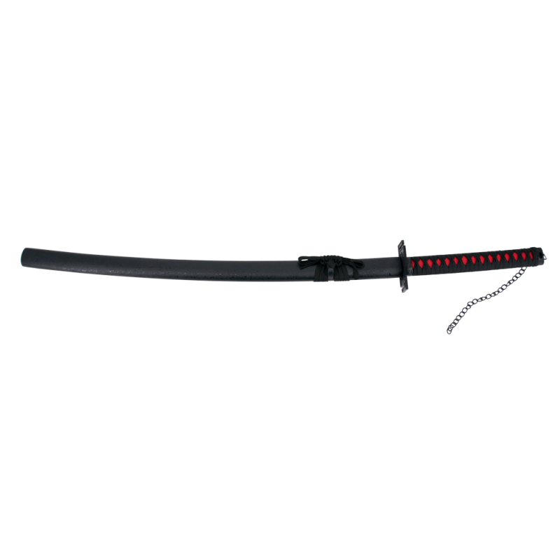 <p>Katana S5013 Tensa Zagetsu Ichigo Kurosaki di Bleach replica non ufficiale 102cm lama in acciaio nero, fodero nero, manico con corde nere. Rif. S5013</p>