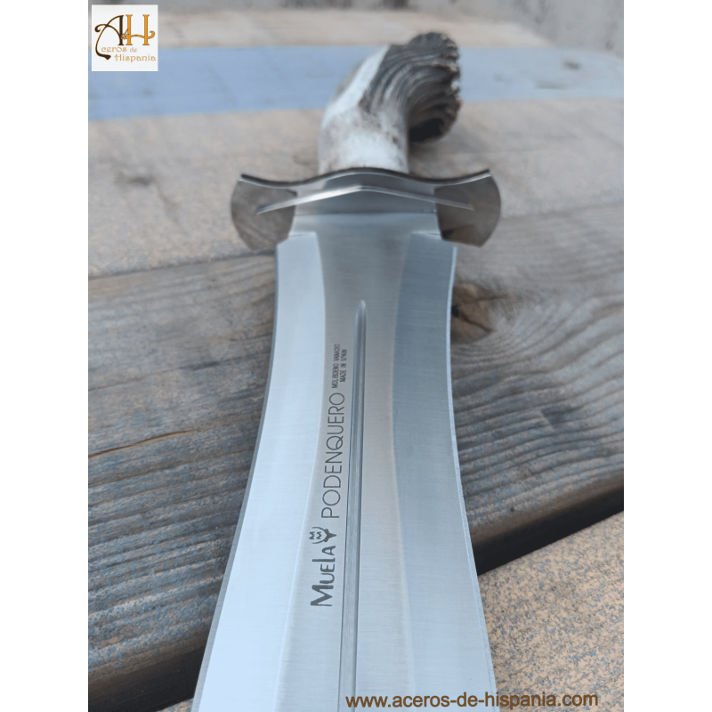 Il coltello da finitura Podenquero-S Muela è un pezzo indispensabile per qualsiasi cacciatore o amante degli sport all'aria aperta. Con un manico da 5 1/2" (140 mm) e una lama in acciaio 440c da 10 3/4" (260 mm), questo coltello è ideale per eseguire tagli precisi ed efficaci durante la caccia.