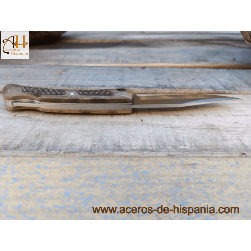 Manico in noce Muela coltello lungo 10 cm. Ha una lama di 9 cm in acciaio 440. Un coltello da tasca molto leggero pesa 80 grammi, il che lo rende ideale per l'uso quotidiano, un coltello da tasca per ogni situazione.