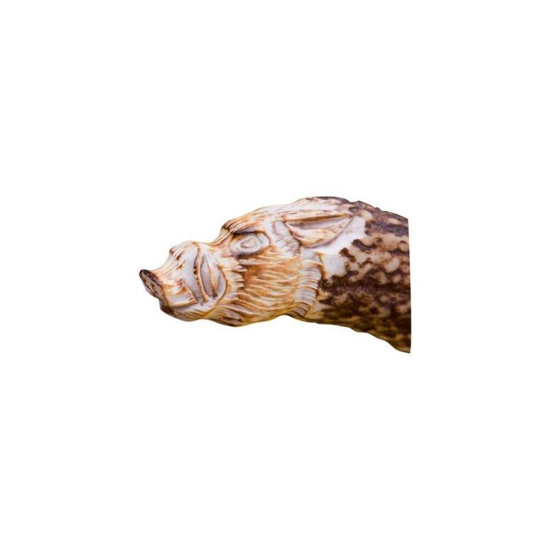 COLTELLO DA CACCIA CON MANICO DI CERVO INTAGLIATO A MANO E LAMA DA 14 CM. FODERO IN PELLE.