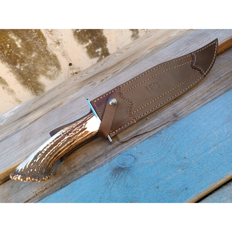 Coltello da caccia Bowie Joker con manico a corona di cervo Lama 25 cm