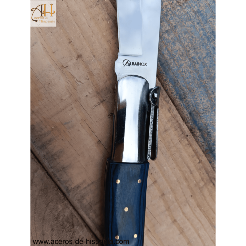 Il coltello arabo a cricchetto blu, ha una lama da 21,8 cm in acciaio 3Cr13Mov di 2,20 mm di spessore, questo acciaio è ampiamente utilizzato per realizzare coltelli e coltelli.
