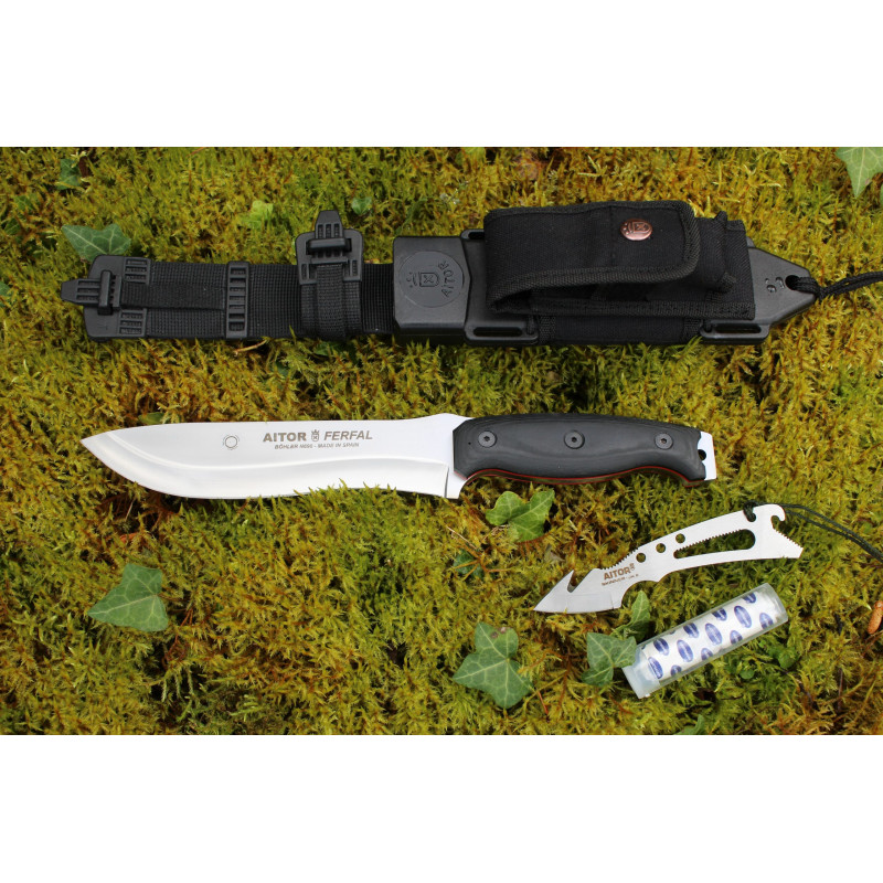 Ferfal Aitor coltelli da sopravvivenza e bushcraft. Con una lunghezza totale di 295 mm, questo coltello è robusto e robusto, perfetto per affrontare qualsiasi sfida in natura.