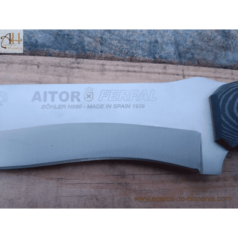 La lama del "Ferfal Aitor knife" è realizzata in acciaio BÖhler N680, un materiale di alta qualità che garantisce ottime prestazioni. Questo acciaio è noto per la sua resistenza alla corrosione e la capacità di mantenere il bordo più a lungo, rendendolo la scelta ideale per le attività all'aperto e nella natura.