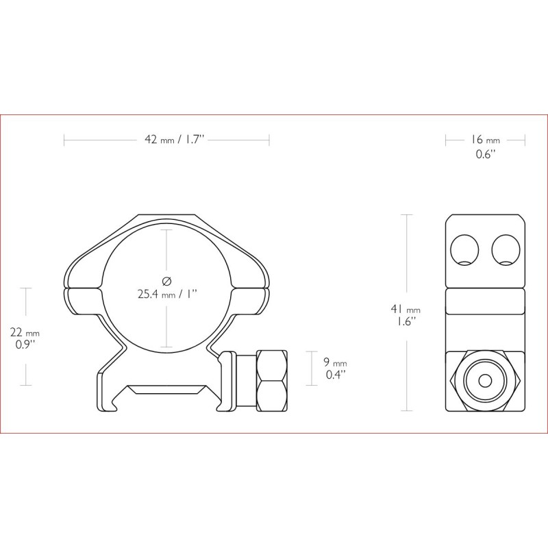 <p>Modello medio</p> <p>Dimensione dell'anello (diametro) 1 pollice</p> <p>Tessitore di rotaie</p> <p>Configurazione a 2 pezzi</p> <p>Attacchi (in alto) Double Torx (T15)</p> <p>Filettatura (superiore) 6-48</p> <p>Elementi di fissaggio (binario) Dado esagonale (1/2")</p> <p>Filettatura (binario) 8-32</p> <p>Cuscino interno No</p> <p>Perno di arresto del rinculo retrattile No</p> <p>Altezza: 1,6" 41 mm</p> <p>Peso 5.3 oz 149 g</p>