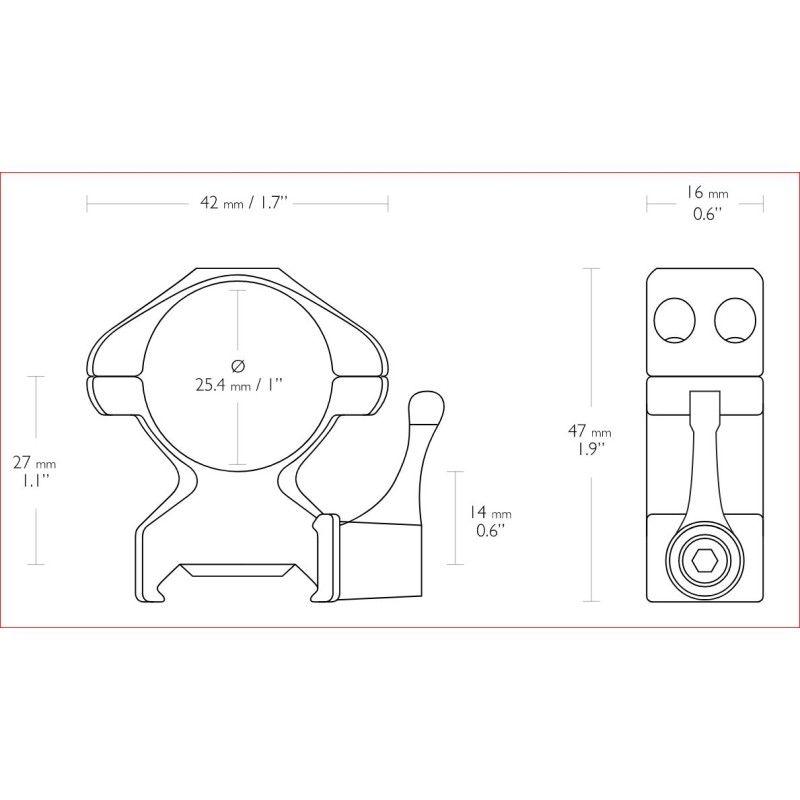 <p>Modello alto</p> <p>Dimensione dell'anello (diametro) 1 pollice</p> <p>Tessitore di rotaie</p> <p>Configurazione a 2 pezzi</p> <p>Attacchi (in alto) Double Torx (T15)</p> <p>Filettatura (superiore) 6-48</p> <p>Elementi di fissaggio (binario) Leva</p> <p>Filettatura (binario) 8-32</p> <p>Cuscino interno No</p> <p>Perno di arresto del rinculo retrattile No</p> <p>Altezza: 1,9" 47 mm</p> <p>Peso 6.7 oz 190 g</p>