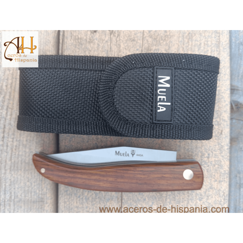 Coltellino tascabile Muela con impugnature in cocobolo, ha un manico di 13 cm realizzato in legno di cocobolo e rivettato. Il sistema di chiusura è a pistone. Ha una lunghezza totale di 21,5 centimetri. Il coltellino tascabile include il fodero.