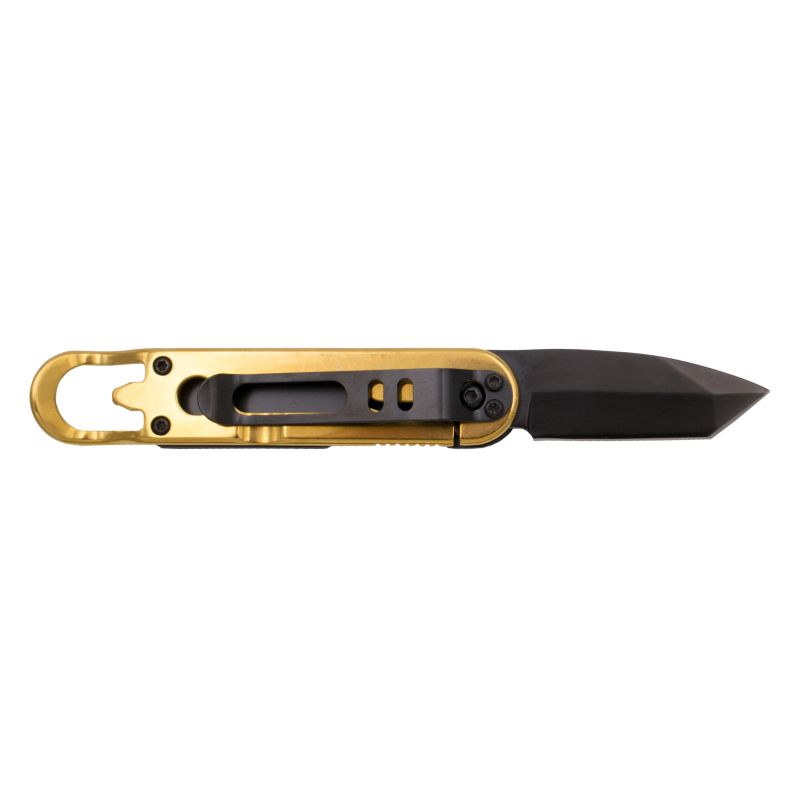 <p>Coltello apriostriche Third N64</p> <p>Manico in alluminio rifinito in nero con texture.</p> <p>Guarnizioni placcate in titanio oro lucido</p> <p>Lama in acciaio inossidabile da 5,5 cm rifinita in nero.</p> <p>Manico: Alluminio</p> <p>Lama: acciaio 420</p> <p>Spessore lama: 2,25 mm</p> <p>Taglio cm: 5,3 cm</p> <p>Dimensione manico: 10 cm</p> <p>Lunghezza totale: 15,5 cm</p> <p>Peso: 58 gr</p>