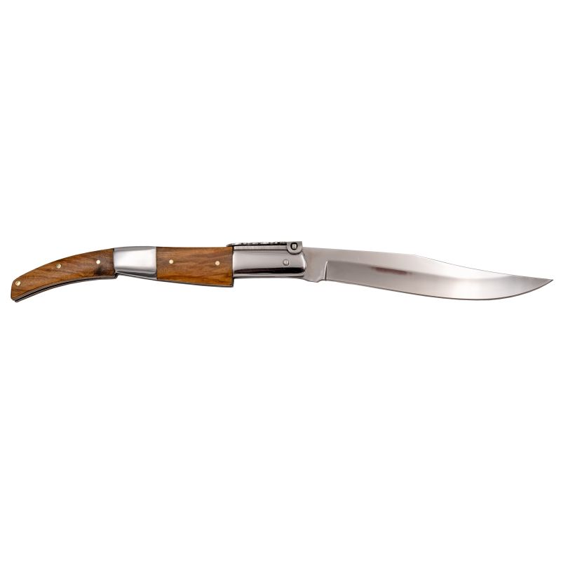 <p>Coltello a cricchetto di Third Amber Serie N54O, realizzato con tecnologia CNC, manico con ghiere in acciaio inox rifinite in lucido a specchio e inserti in legno d'ulivo, lama in acciaio 440 rifinita in specchio lucido di 13 cm, con molla e billetta decorati. Con scatola di presentazione.</p> <p><strong>Mango:</strong> Acciaio Inox e Olivo<br /><strong>Foglia:</strong> Acciaio 440<br /><strong>Dimensione della lama: </strong>13 cm<br /><strong>Spessore lama:</strong> 2,4 mm<br /><strong>Taglio cm:</strong> 12 cm<br /><strong>Dimensione del manico:</strong> 15,6 cm<br /><strong>Lunghezza totale:</strong> 28,5 cm<br /><strong>Peso:</strong> 154 gr</p>