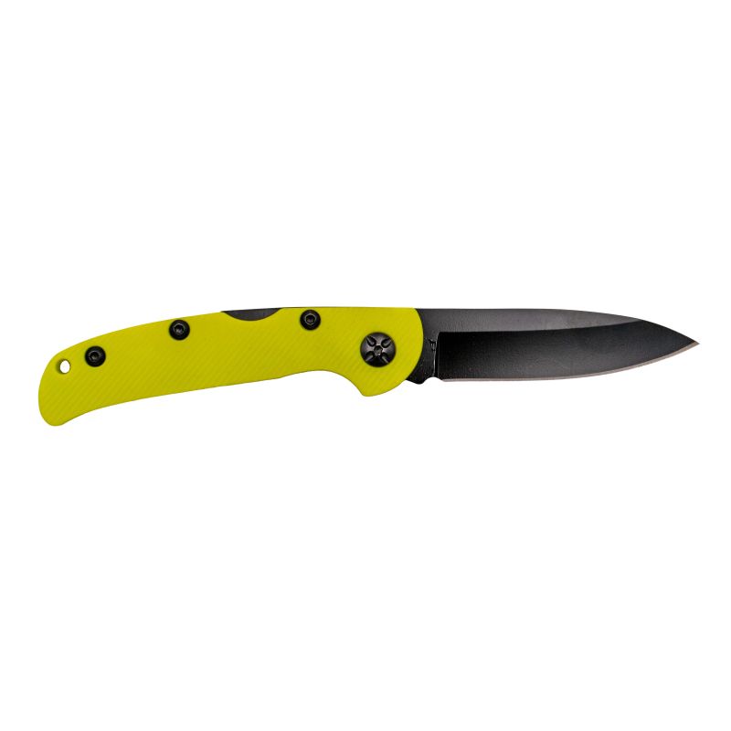 Third coltello di bloccaggio, manico in fibra di nylon giallo, lama in acciaio inox 420 da 8 cm rifinita in nero.