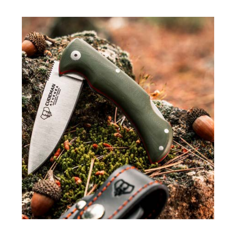 <p>Coltellino tascabile per l'uso quotidiano</p> <p>Modello Athenea prodotto da Cudeman.</p> <p>Lunghezza lama: 8 cm</p> <p>Lunghezza manico: 10,5 cm</p> <p>Lunghezza totale: 18,5 cm</p> <p>Spessore lama: 3 mm</p> <p>Larghezza della lama: 2,5 cm</p> <p>Finitura: Satinato</p> <p>Acciaio: Böhler N690Co</p> <p>Durezza dell'acciaio: 60/61 HRc</p> <p>Sistema di bloccaggio: Blocco posteriore</p> <p>Manico: G10 verde con distanziale arancione</p> <p>Peso al pezzo: 130 gr (approssimativo)</p> <p>Custodia compatibile (non inclusa): <a href="https://www.aceros-de-hispania.com/es/30023-funda-cuero-para-navaja-cudeman.html">604-NN</a></p> <p>Prodotto ad Albacete, Spagna.</p>