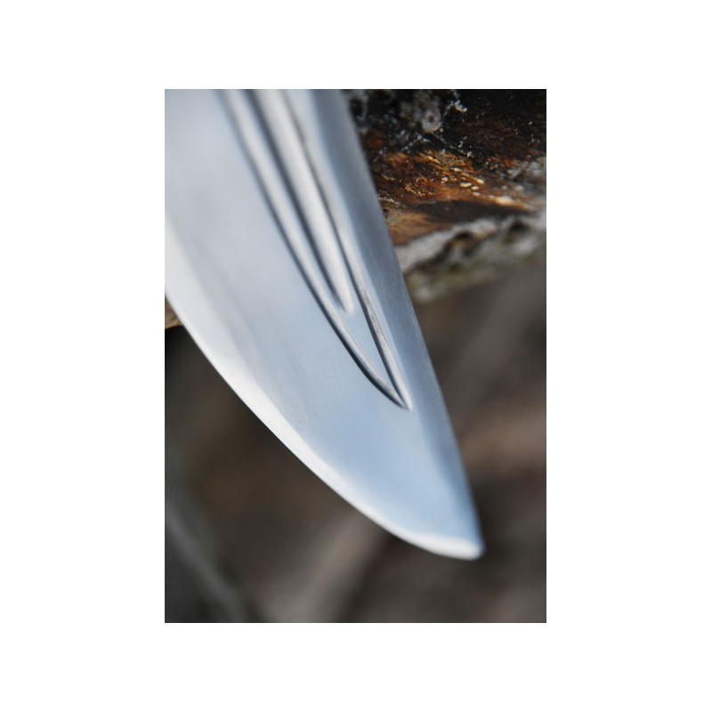 <p>Falcata con manico a testa di cavallo, incl. fodero e coltello, IV-III secolo a.C.</p> <p></p> <p> -Falcata </p> <p>- nuova versione rivista dal 2022 (il numero dell'articolo non cambia) </p> <p>- Materiale: acciaio per molle EN45 (acciaio al carbonio, non inossidabile), osso animale, ottone </p> <p>- Incl. custodia in legno con custodia in vera pelle e anelli mobili in ottone.</p>