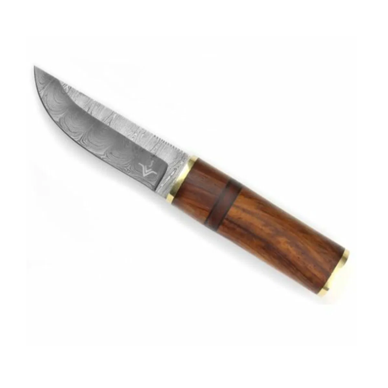 Il coltello Njord Petri Puukko è progettato seguendo la tradizione dei coltelli scandinavi, combinando funzionalità, estetica e durata. Realizzato in acciaio damasco forgiato a mano, offre una lama resistente e affilata con un design unico nelle sue vene. Il suo manico in palissandro offre una presa comoda e sicura, incorporando un rinforzo in ottone, un anello decorativo e uno strato protettivo a base di cera d'api e olio di lino.