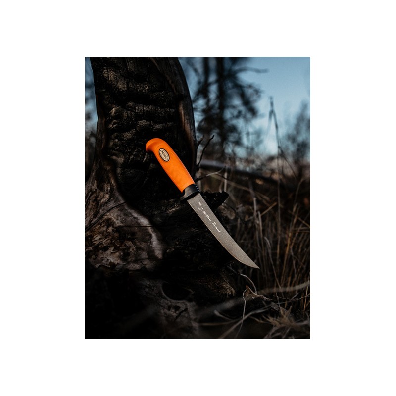 <p>marttiini coltello trinciante</p> <p></p> <p>-DIMENSIONI:</p> <p></p> <p>-Lunghezza lama:</p> <p>15 cm</p> <p></p> <p>-Lunghezza intera:</p> <p>27 cm</p> <p></p> <p>-MATERIALI:</p> <p></p> <p>-Materiale lama:</p> <p>in acciaio inossidabile, rivestimento Martef</p> <p></p> <p>-Materiale manico:</p> <p>in gomma, arancione</p> <p></p> <p>-Materiale della cassa:</p> <p>in pelle, nero</p> <p></p> <p>I coltelli da caccia rivestiti Martef sono molto apprezzati per la loro capacità di respingere lo sporco e l'umidità.</p> <p>Questo rivestimento riduce quasi completamente l'attrito e protegge la lama dalla corrosione.</p> <p>Permette tagli delicati di carne o pesce e facilita la pulizia dopo l'uso.</p> <p>Il coltello descritto è adatto per tagliare e tagliare la carne grazie alla sua lama in acciaio inox con rivestimento Martef.</p> <p>Include un pratico fodero in pelle per trasportare il coltello durante le uscite di caccia.</p>