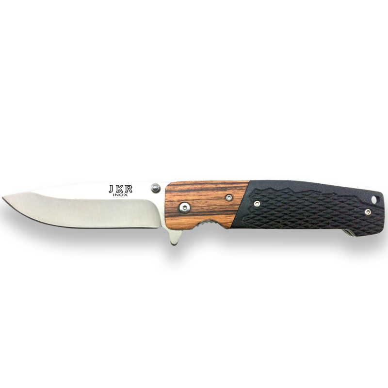 COLTELLO SPORTIVO JKR CON G10 E IMPUGNATURE IN LEGNO, LAMA IN ACCIAIO INOX DA 8,7 CM.