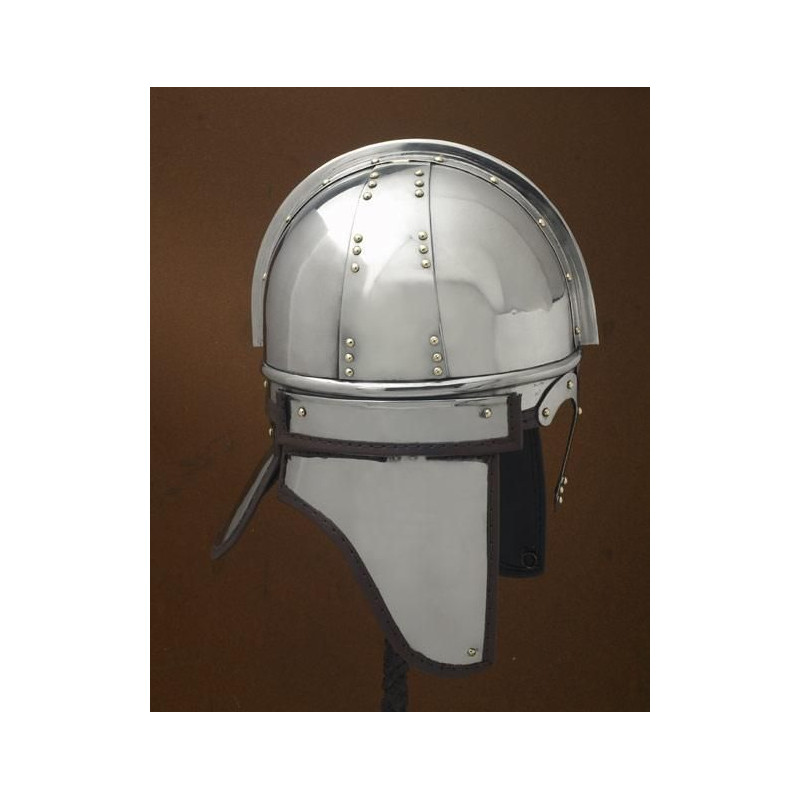<p>A entrega inclui chapéu de algodão interno acolchoado. <br />Adequado para perímetro cefálico até 61 cm.</p> <p>Longa distância (de trás para frente): aprox. 22,5. centímetro <br />Curta distância (orelha a orelha): aprox. <br />Peso de 19 cm. : aprox. 2,3 kg</p>Réplica de aço do século III ao IV baseada no original do Castelo de Burg, Norfolk (Inglaterra)