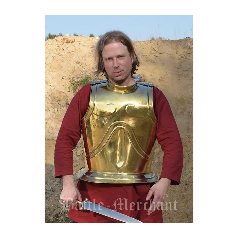 <p>Detalhes: <br />- Material: placa de latão de 1,2 mm <br />- Circunferência torácica: aprox. 126 cm <br />- Circunferência da cintura: aprox. 120 cm <br />- Comprimento do ombro: aprox. 53 cm <br />- Peso: aprox. 6,4 kg</p>Este torso de bronze é inspirado em modelos gregos do período arcaico (c. 750 - 600 a.C.).<br /><br /> As duas partes são unidas por pinos.<br /><br />