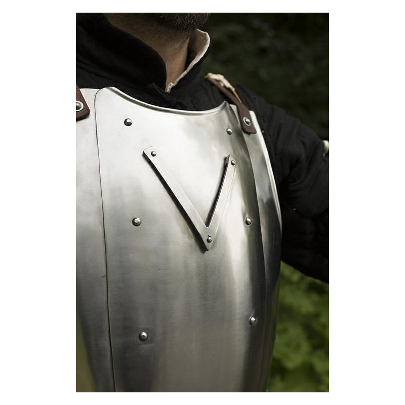 <p>Disponível nos tamanhos M, L, XL e XXL</p> <p>Cores preto e prata.</p> <p>Prazo de entrega aprox. 15 dias</p>Impressionante babador funcional para proteger o tronco.<br /><br /> Fabricado em aço carbono de 1mm de espessura com bordas laminadas.<br /><br /> As pulseiras e acessórios são feitos de couro artesanal de alta qualidade, peças soldadas para máxima durabilidade.<br /><br /> Revestimento resistente à ferrugem.<br /><br />