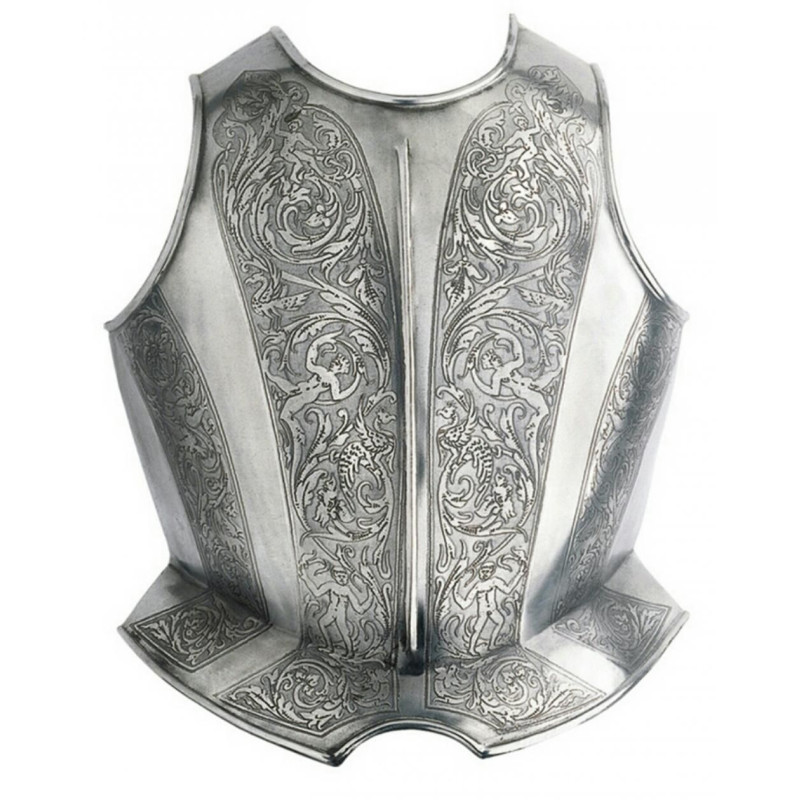 A couraça do arnês completo era feita de aço, e era deformada, para melhor desviar golpes e projéteis.