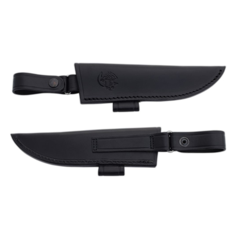 <p>- Fabricado em: Albacete (Espanha)</p> <p>- Referência do catálogo: 1411-TRF1-PT</p> <p>- Tipo de Ponta: Padrão</p> <p>- Comprimento da lâmina: 10,3 cms</p> <p>- Comprimento do punho: 11,8 cms</p> <p>- Comprimento total: 22,1 cms</p> <p>- Largura máxima da lâmina: 3 cms</p> <p>- Espessura da lâmina: 4 mms</p> <p>- Material da lâmina: 1.4116 aço inoxidável</p> <p>- Dureza: 56/58 HRc</p> <p>- Material de aderência: TRF Preto</p> <p>- Material da capa: Couro</p> <p>- Peso: 280 grs (com tampa incluída)</p> <p>- Extras: Furo para fixação do cabo</p> <p>Botão do martelo</p>
