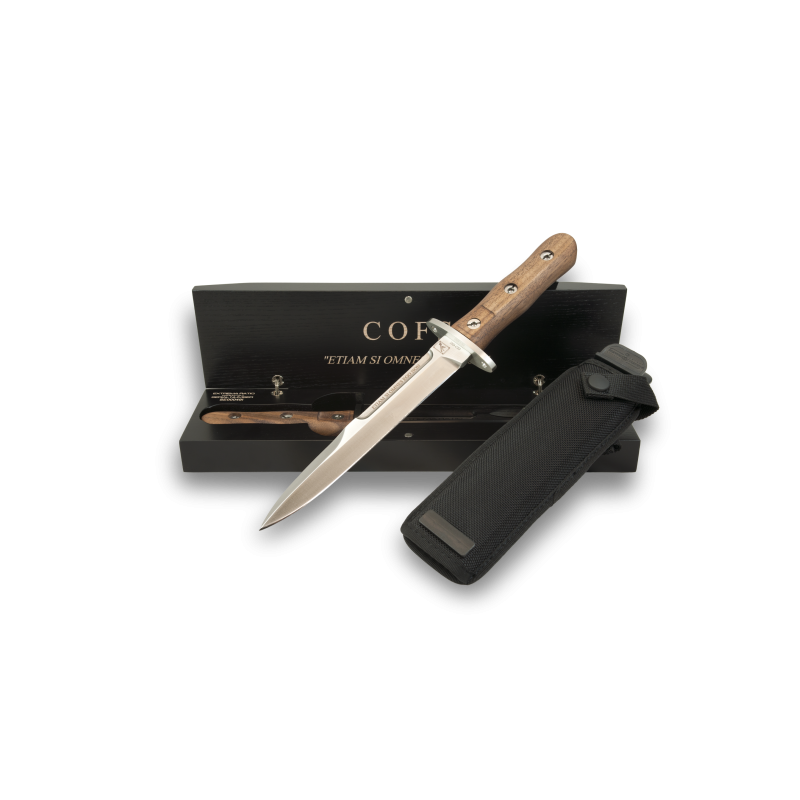 Resultado de um projeto patrocinado pelo COFS (o comando de operações interforças das forças especiais italianas) e seu ex-comandante-em-chefe, general Bertolini, além de recomendado por colecionadores de facas em todo o mundo, esta faca de combate 39-09 é um redesenho da faca modelo 1939 "paracadutista asassaultatore" (paraquedista de assalto), Um pedaço célebre da história militar italiana.<br /><br />Embora mantendo a forma, estrutura e proporções originais, conseguimos reforçar, adicionar maior funcionalidade e fabricar esta faca de combate de acordo com as especificações militares contemporâneas a partir de materiais atualizados.<br /><br />Pequenas mudanças que o tornam um punhal altamente eficaz e confiável. A bainha dura incluída foi projetada para ser usada no tornozelo, no estilo característico dos paraquedistas italianos.<br /><br />A versão 39-09 SPECIAL EDITION, numerada, edição ilimitada, tem um cabo de madeira, lâmina e detalhes com acabamento acetinado, e logotipo e lema COFS. Ele vem em uma caixa de madeira preta, que inclui um coldre de cinto de desfile.<br /><br />FICHA TÉCNICA<br />Peso g.: 338<br />Peso de onças: 11,9<br />Comprimento da lâmina (mm): 195<br />Comprimento da lâmina (pol): 7.7<br />Comprimento Total (mm): 319<br />Comprimento Total (pol): 12.6<br />Espessura da lâmina (mm): 6.3<br />Espessura da lâmina (pol): 0.25<br />Material da lâmina: BöHLER N690 STEEL (58HRC)<br />Acabamento da lâmina: cetim<br />Grade Principal: PISO<br />Material do punho: MADEIRA