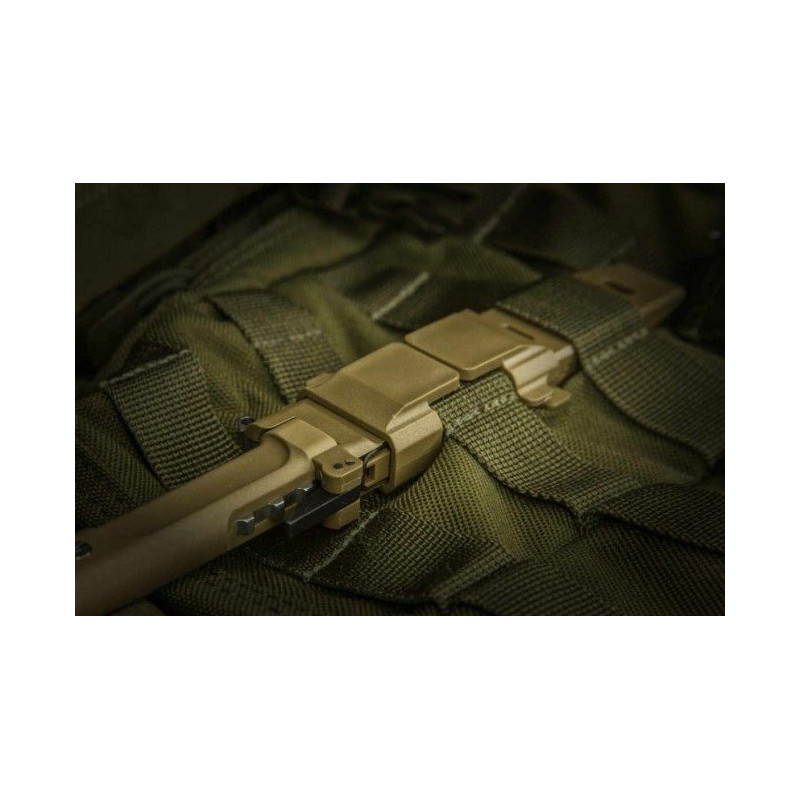 Faca tática multiuso muito leve e fácil de manusear. Esta caneta de borda única com protetor exclusivo vem com uma bainha de nylon Aspis especial que foi especificamente estudada por Extrema Ratio para permitir a liberação rápida da lâmina e sua fixação dentro do sistema M.O.L.L.E., graças a dois clipes multi-posição.