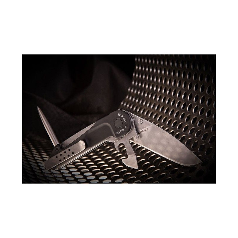 BF1 é uma faca dobrável para uso diário: simples, essencial e funcional. A lâmina é polida, com um polimento plano e uma ponta grossa e durável. As características áreas planas embutidas no cabo - também preto polido - dão acesso aos "pinos" de abertura, que não se projetam da faca quando fechados. O clipe reversível fica na parte de trás da lâmina e envolve seu tang, tornando-o discreto para carregar. Emprega o confiável sistema de travamento da lâmina LINER-LOCK. Versões disponíveis: BF1 CT BLACK, BF1 CT BLACK ROUGH, BF1 CT DESERT WARFARE, BF1 CD BLACK, BF1 CD BLACK ROUGH, BF1 CD DESERT WARFARE.
