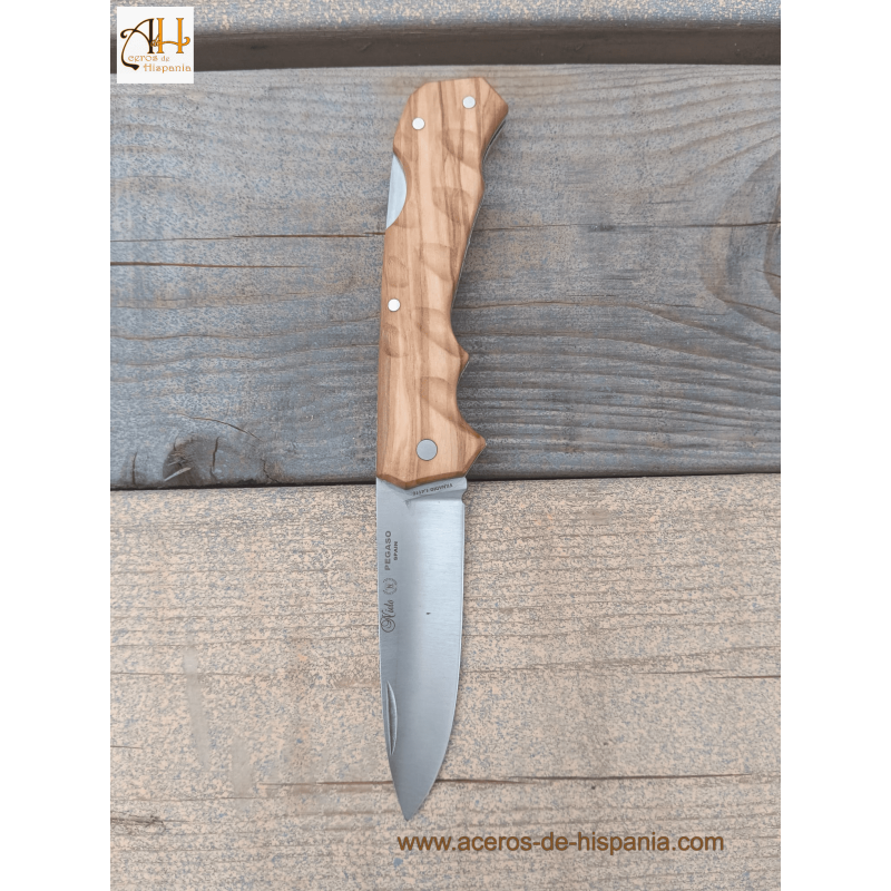 <p>- Canivete Pegasus.<br />- Lâmina: Aço AN58.<br />- Cabo feito de madeira de oliveira.<br />- Comprimento da lâmina: 8 cms.<br />- Comprimento total: 19 cms.<br />- Peso: 96 grs.<br />- Fabricado em Albacete (Espanha).</p>