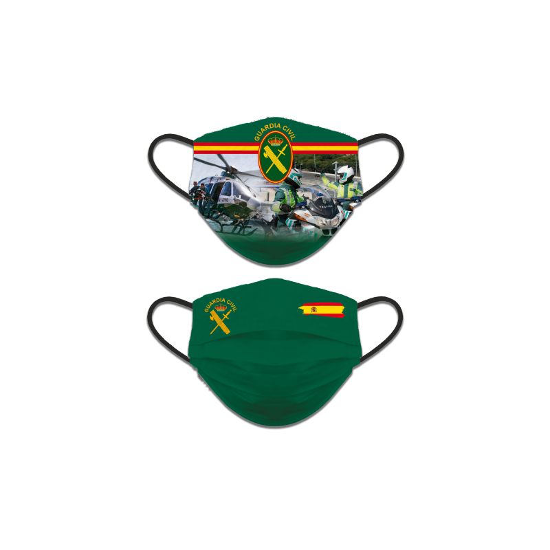 Acc. facial reversível Nível 3<br />Modelo:<br />-Lado 1: Guardia de Trânsito Civil<br />-Lado 2: Verde. G.C & B. Esp. Logo<br />Composição das matérias-primas: 92% PES/ 8% SPANDEX<br />Características:<br />- Número máximo de ciclos de lavagem em que a proteção da máscara é garantida: 25<br />- As máscaras devem ser lavadas com um ciclo de lavagem normal e completo a 60º com detergente.<br />- Esta máscara deve ser utilizada como complemento às medidas de proteção e higiene recomendadas nas regras de distanciamento social fundamentais para o controle da Covid-19<br />NOTA IMPORTANTE: As máscaras de nível 2 e 3 não são enquadradas como material médico ou equipamento de proteção individual EPI<br />