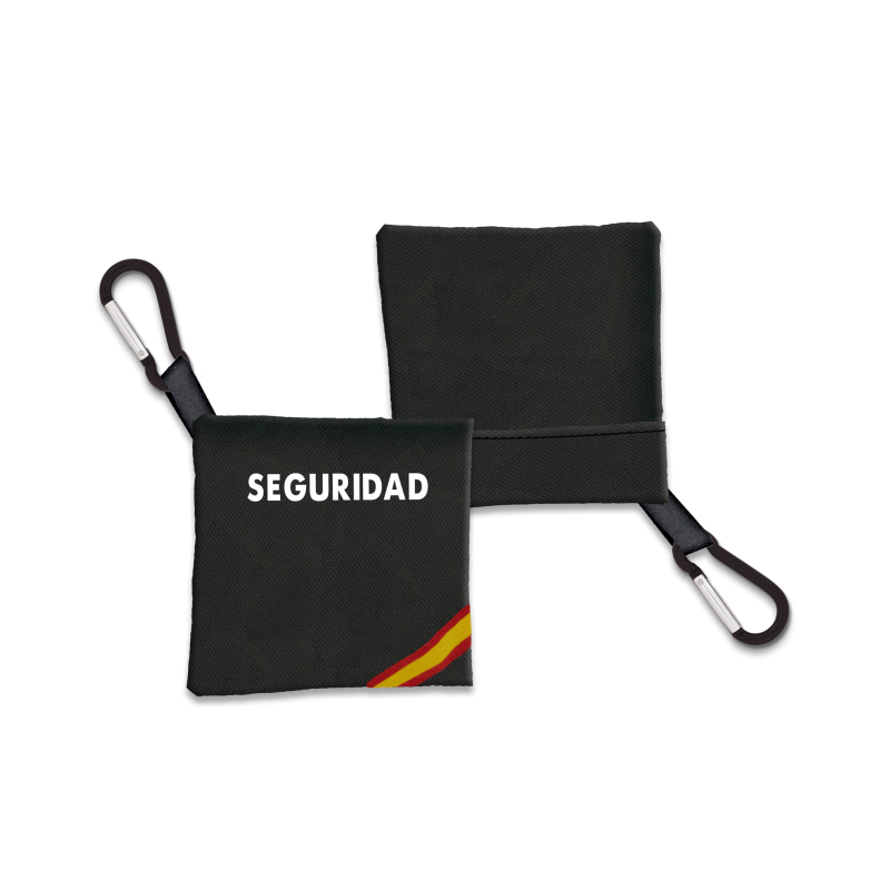 Porta-máscaras<br />-Modelo: SEGURIDAD Bandera España<br />- Cor: Preto<br />- Material: TNT