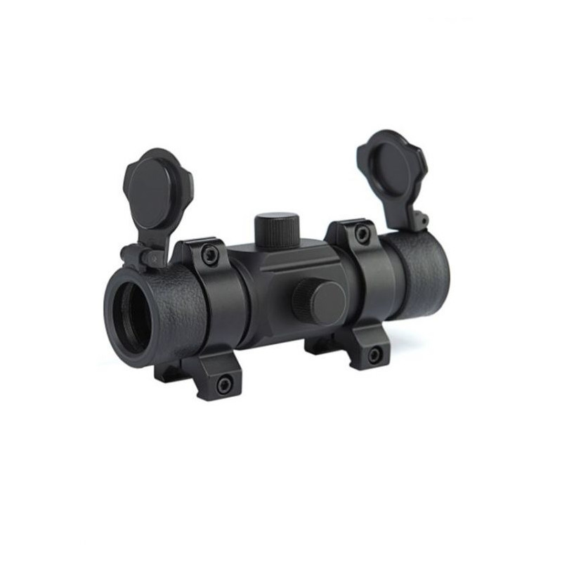CARACTERÍSTICAS:<br /><br />- Sem ampliação.<br />- Diâmetro da objetiva: 25 mm.<br />- Retículo de pontos vermelhos.<br />- Conjunto de anéis para trilho Weaver/Picatinny.<br />- Tampas flip-up.