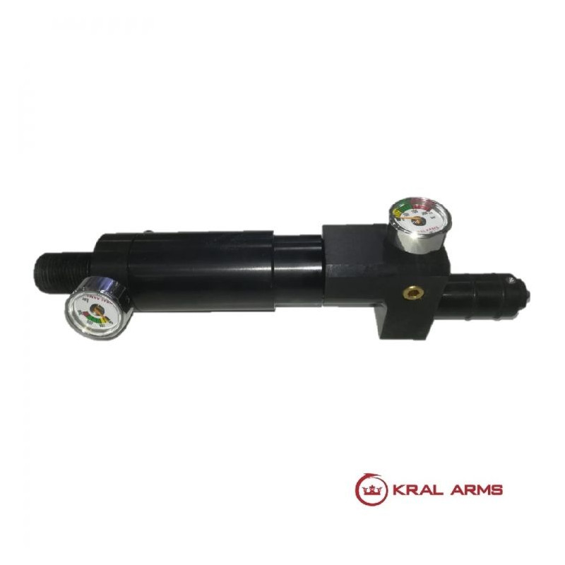*O regulador irá KRAL regular a pressão do ar na sua carabina. A pressão de enchimento alta primária no cilindro é reduzida a uma pressão de trabalho mais baixa. Isso lhe dará velocidade de bola consistente e maior precisão.