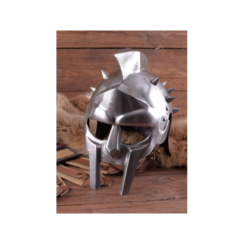 Capacete da gloriosa era dos gladiadores. Possui um acabamento em aço envelhecido e tem um forro ajustável.