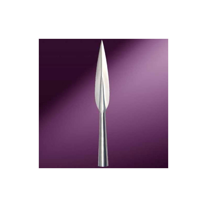 A lança, uma das armas mais antigas do mundo, teve uma presença dominante no campo de batalha por um período incrivelmente longo de tempo. Esta forma particular da folha foi usada por muitas culturas, dos celtas aos romanos e gregos ao Renascimento e ao longo de grande parte da história europeia. A lâmina é feita de aço temperado e cabe uma alça arredondada de aproximadamente 3 cm (não incluída).