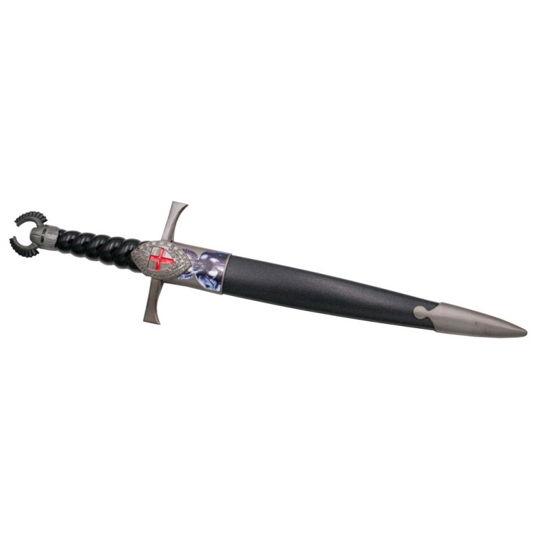 Templário Dagger S0262, o pommel é terminado com um capacete de níquel escuro e a alça em preto, o guarda terminado em níquel escuro com um escudo com uma cruz vermelha no centro. O tamanho total é de 40cm de chapa de aço. A bainha tem acabamento em preto com detalhes em metal níquel escuro. Referência S0262