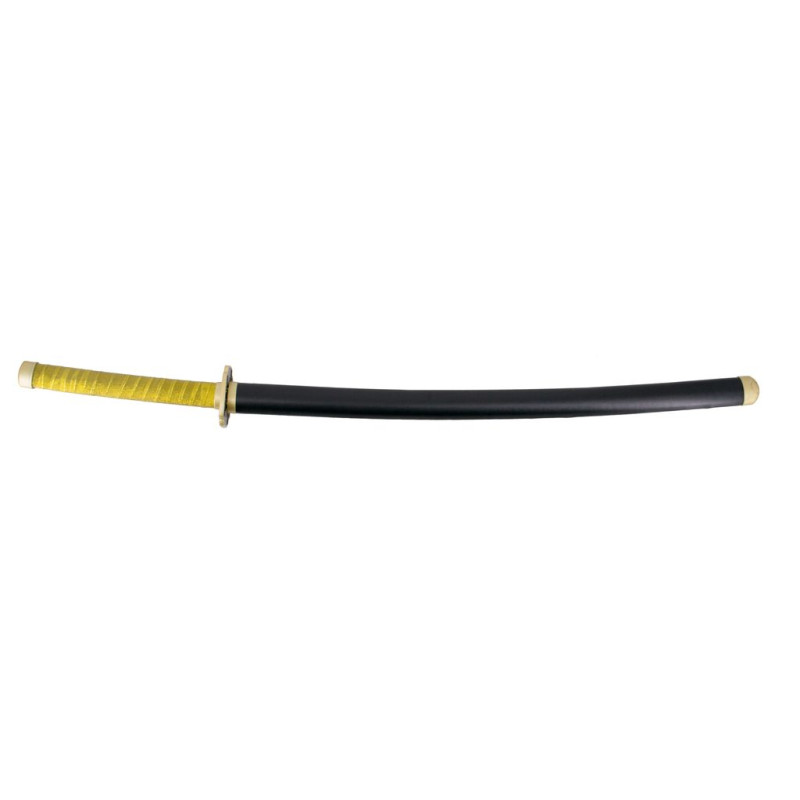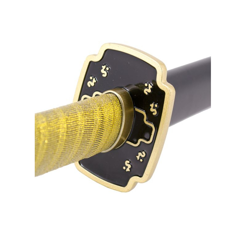 Demon Slayer Katana S0260 empunhado por Yoriichi Tsugikuni réplica não oficial lâmina de aço de 101 cm terminado em preto com corte vermelho, cabo com amarelo, bainha preta com detalhes dourados. Referência S0260