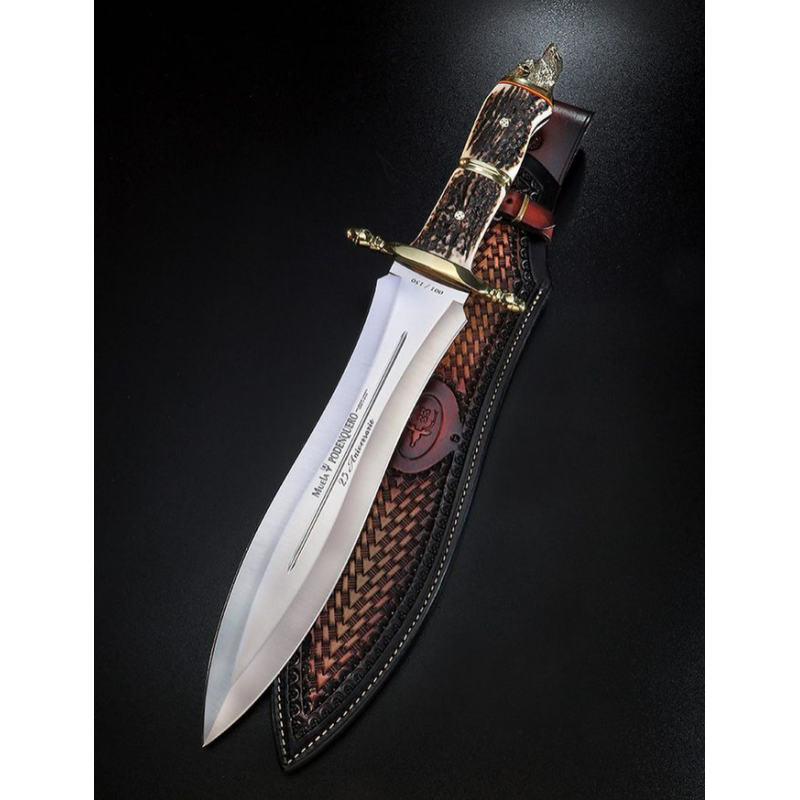 <p>A Manufacturas Muela fabricante de facas e canivetes artesanais apresenta, no seio da família de facas de caça e de desporto, a faca de acabamento PODENQUERO-TH, edição limitada, 25º aniversário.<br /><br />Edição limitada e faca numerada de 250 unidades, 25º aniversário, escamas de chifre de veado.<br /><br />Capa confeccionada pela oficina artesanal "Quercur Leathercraft".<br /><br />- Alça 130 MM (5"). <br />- Lâmina 260 MM (10"). <br />- Peso: 650 GR.</p>