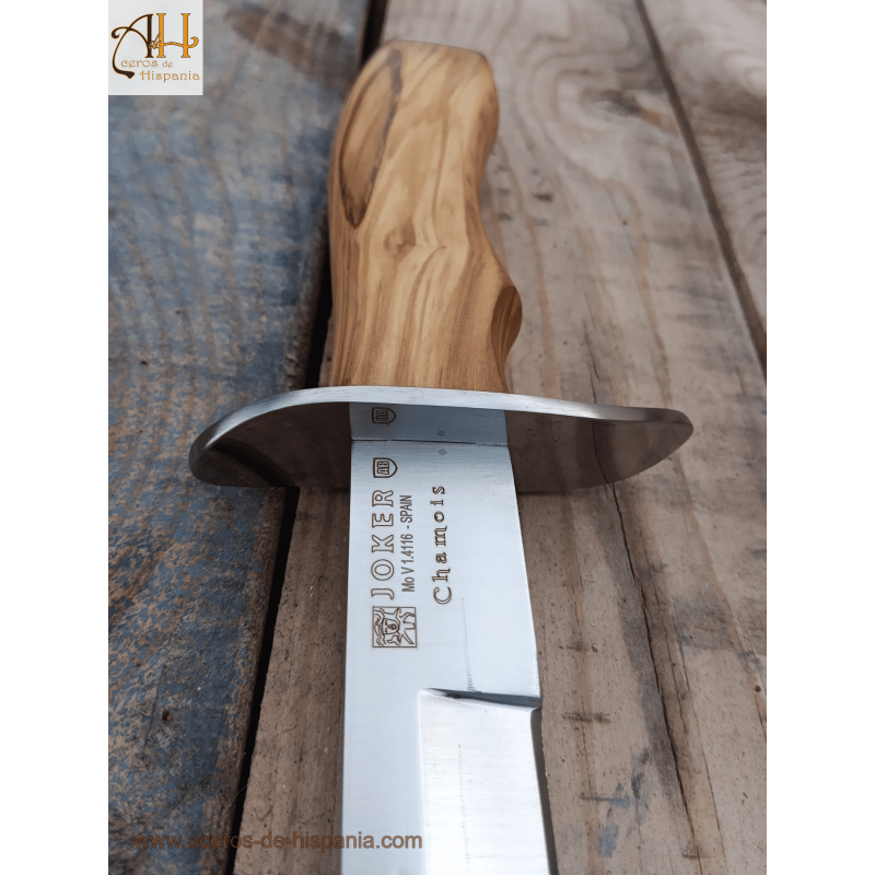 Faca de caça Chamoís de Joker, possui lâmina de 33 cm de comprimento, acabamento acetinado, sua ponta é Drop Point, com uma pá de largura de 2,5 cm e uma lâmina de espessura de 5 mm. É feito de aço Vanario Molibdênio com uma dureza de 56-58 HRc. É uma faca esportiva usada para caça, e muito valorizada por caçadores na Europa Central.